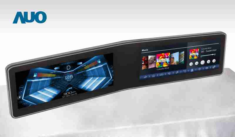 汇旺支付 V 型曲面驾驶舱显示器,,,采全贴合拼接仪表板及中控台显示屏 |