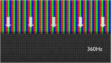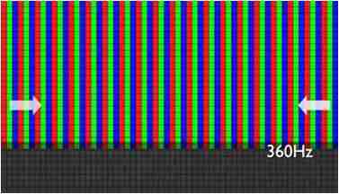 传统液晶驱动是从左到右单向进行,,在画面更新速度愈来越愈快的情况下,,,位于驱动线路末端的右下角区域,,,,画素的闸极来不及在短时间内获得足够电压,,,,无法显示出正确的颜色资讯。。。