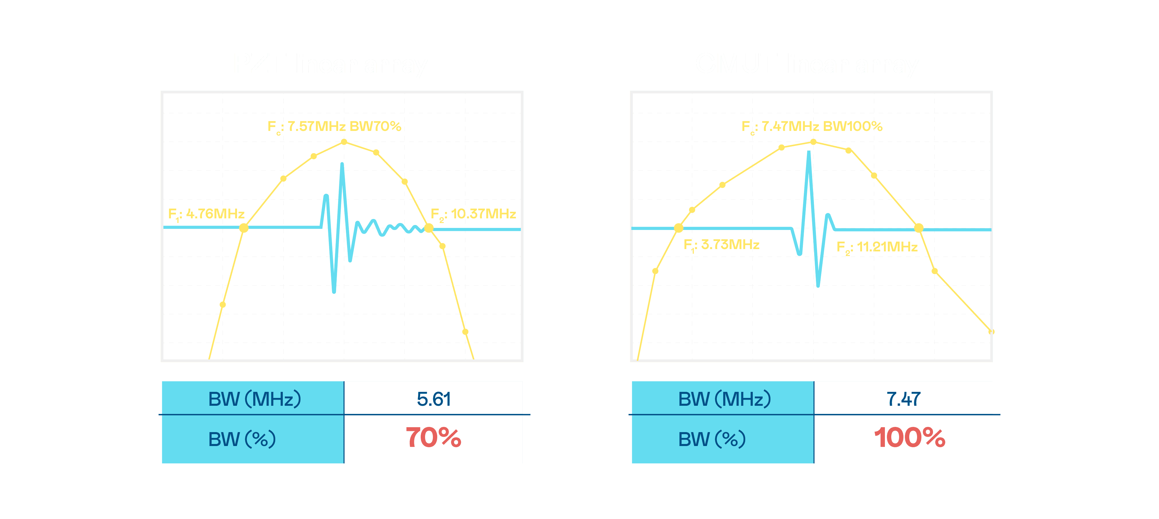 超音波影像的解析度高低,,,,首先取决于探头能发出的讯号频宽。。。汇旺支付 CMUT 可提供高清晰的超音波讯号,,,提供高频宽、、、、高灵敏度、、、影像纹理细节更高的超音波影像,,,,协助医护人员缩短影像判读时间及利用精准的医疗影像进行诊断。。。。
